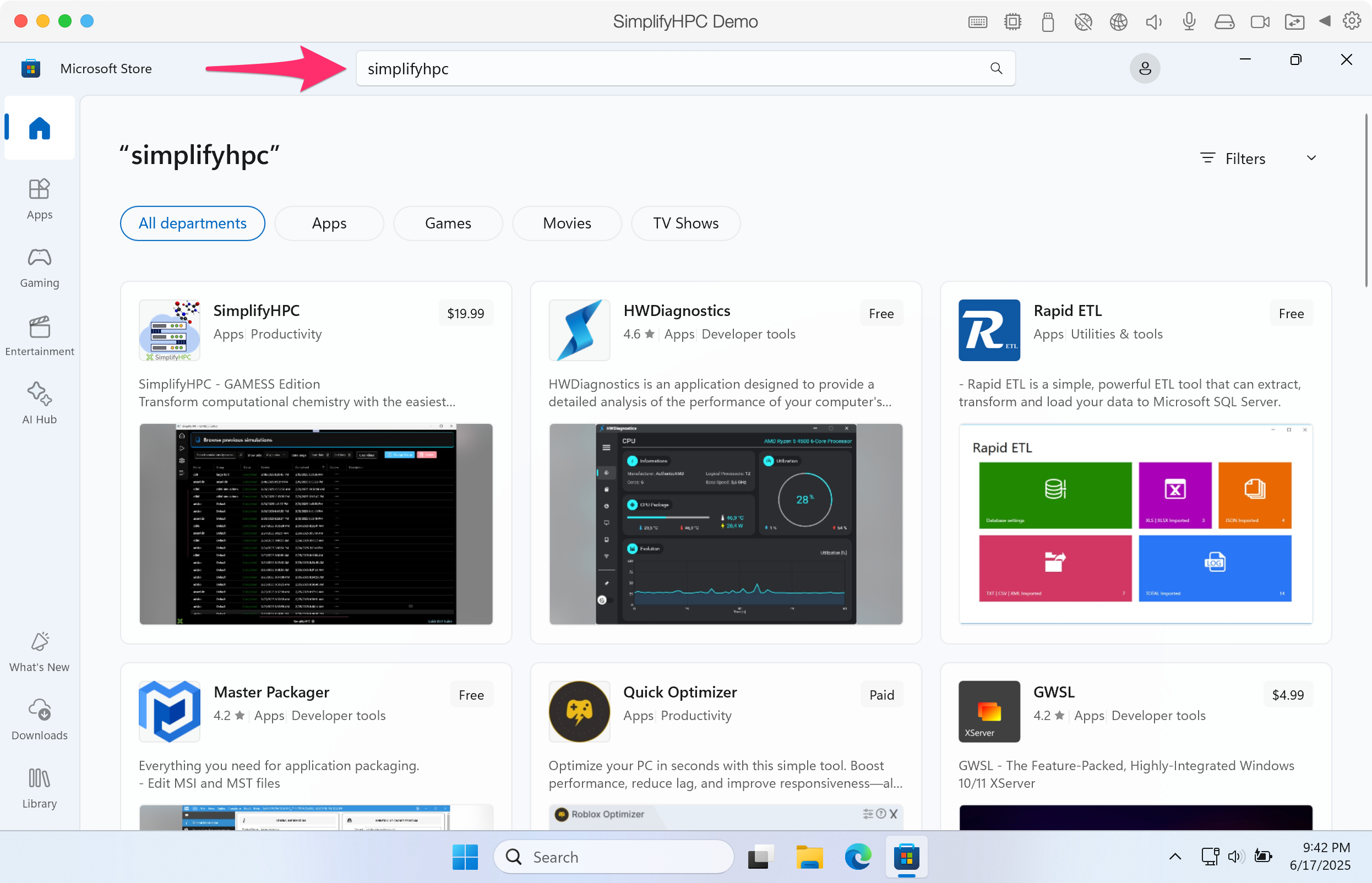 Step 2. Search for simplifyhpc in the search bar.