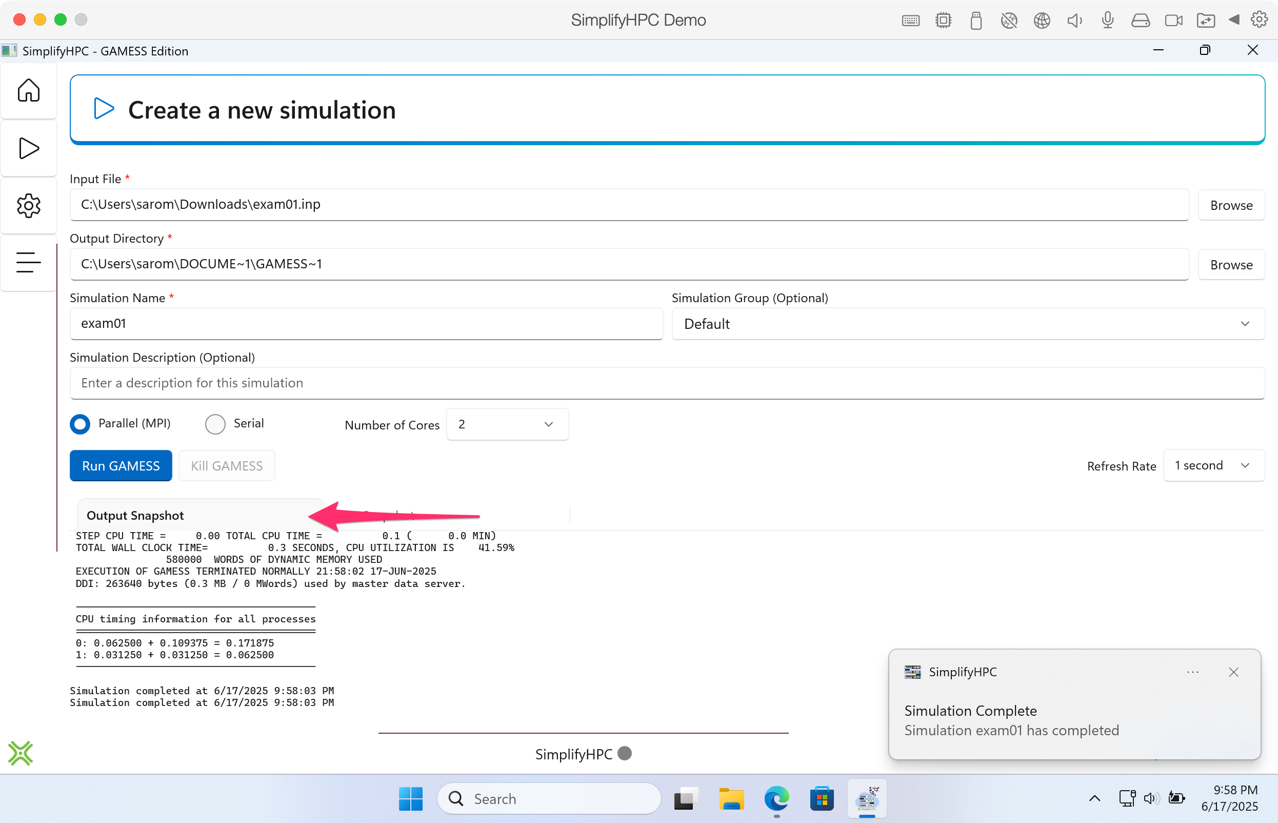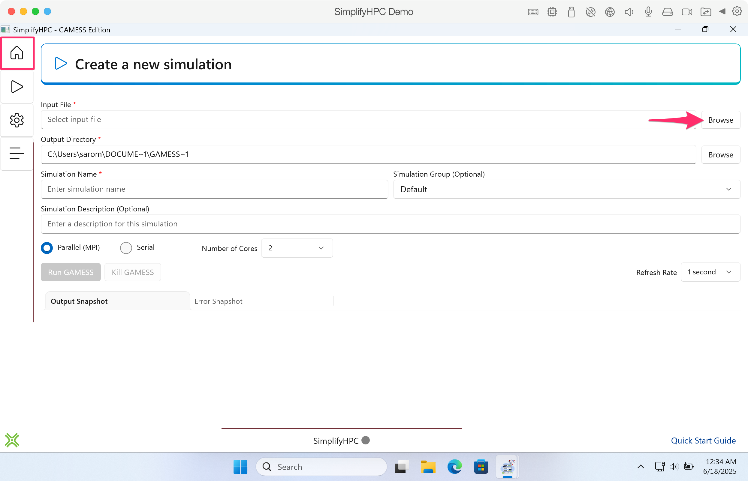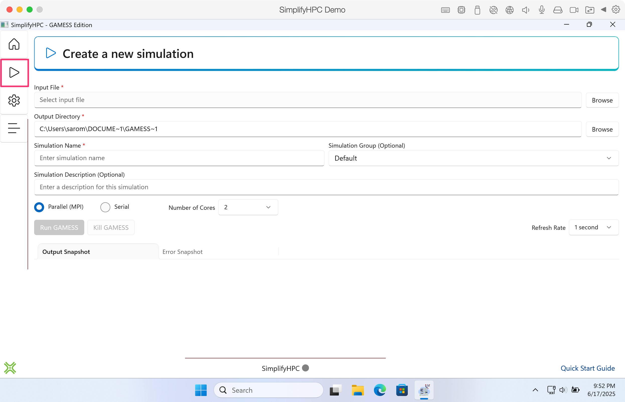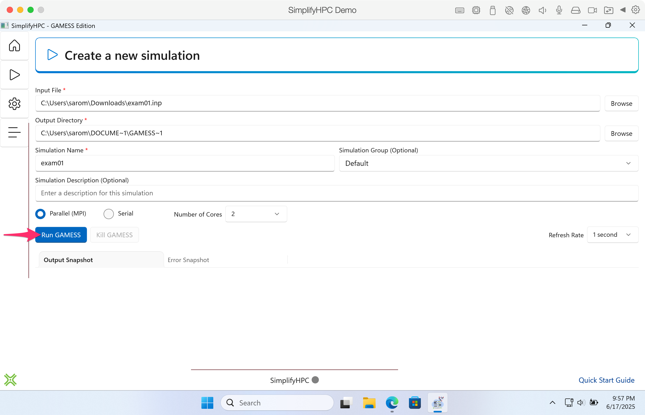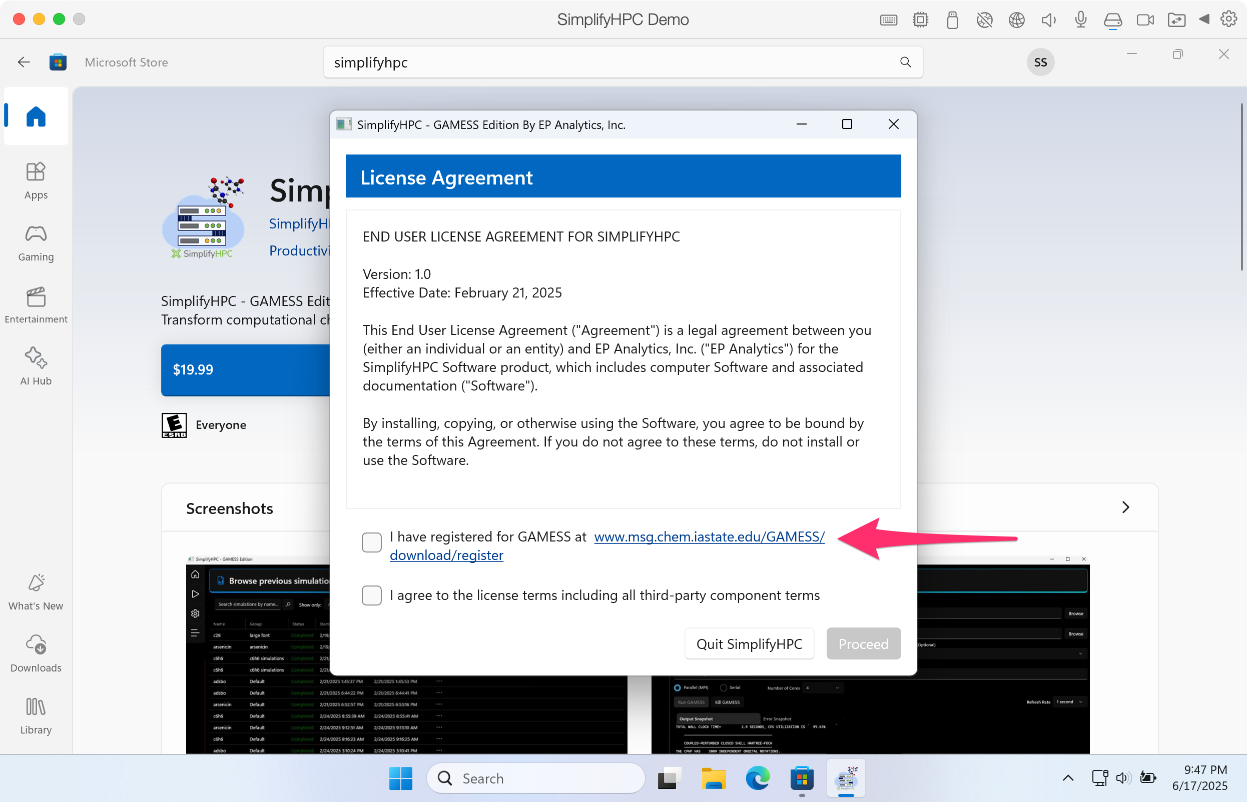 Step 6. If this is your first time using SimplifyHPC, you will need to register at the GAMESS website.