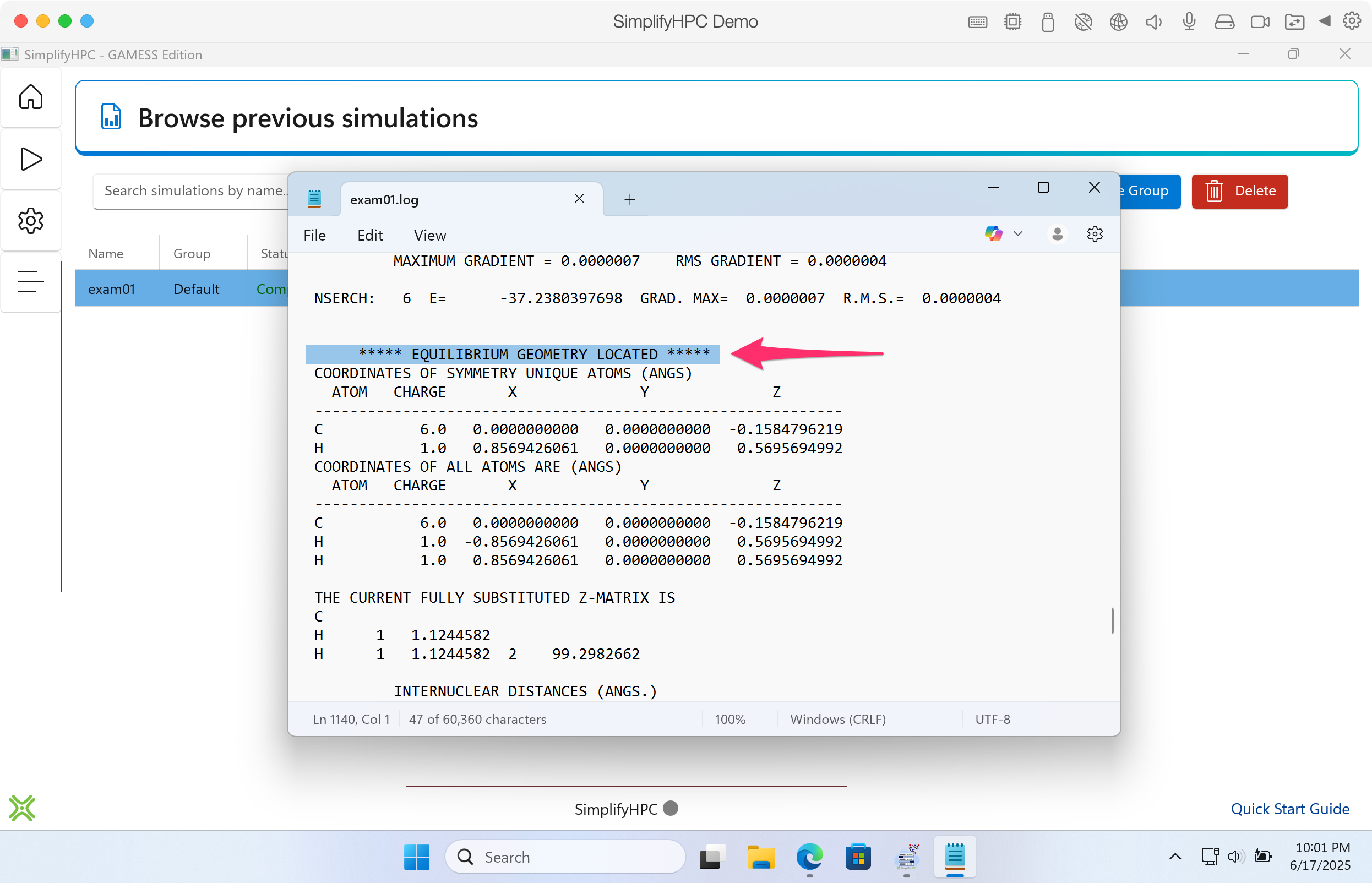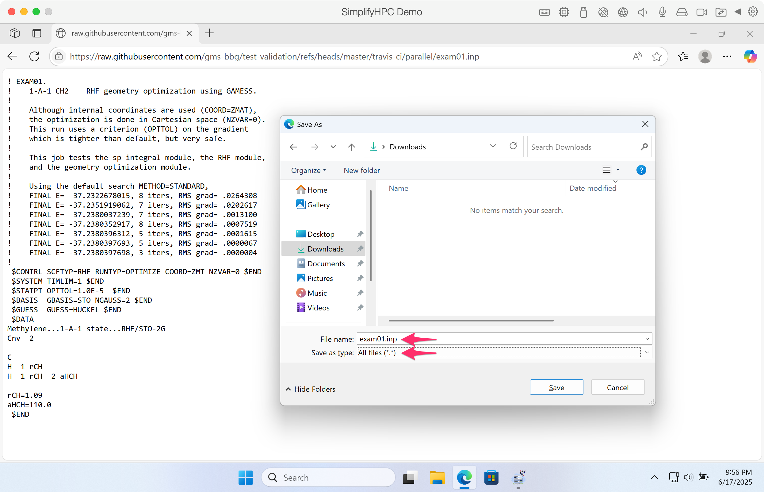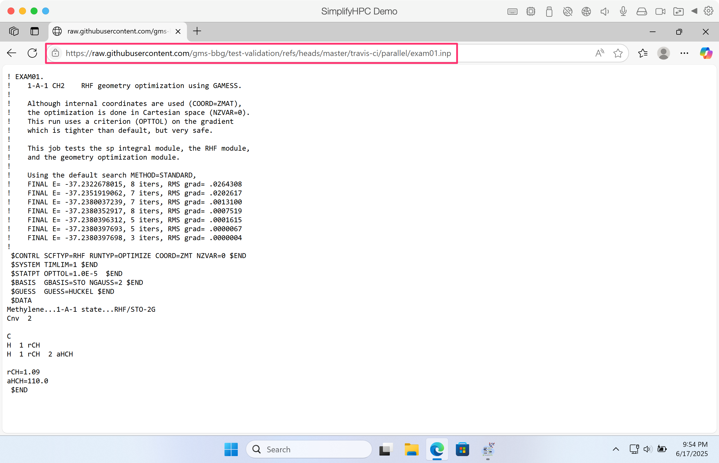 Step 15. Lets run a GAMESS simulation. The first thing we need is a GAMESS input file. Navigate your browser to the following URL: